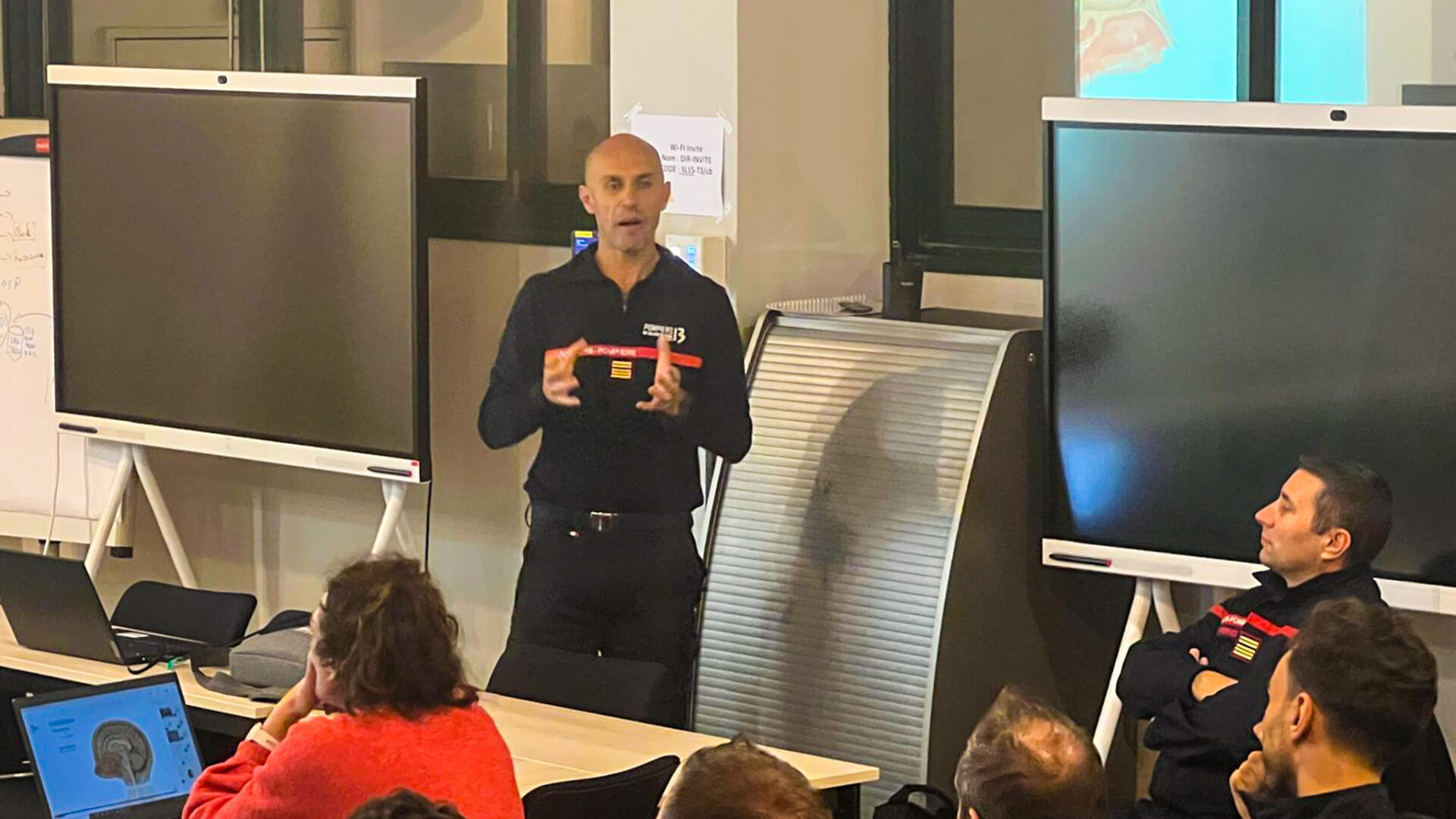 « Nous avons pu compter sur la présence de Salah Boussen, qui est Pompier13 volontaire chez nous depuis 18 mois mais également professeur des universités – praticien hospitalier (PU-PH) et qui exerce à La Timone, dans le pôle anesthésie-réanimation », détaille le médecin-pharmacien Loïc Drouet, de la sous-direction Santé des Pompiers13 et à la baguette dans l’organisation de ces cours du soir. « Il était déjà intervenu il y a un an et on aimerait continuer à le solliciter sur ces sujets-là. Il est dans l’information et l’actualisation de la donnée médicale, ce qui constitue une grosse plus-value pour nos padawans mais aussi pour nos personnels en activité », sourit-il.